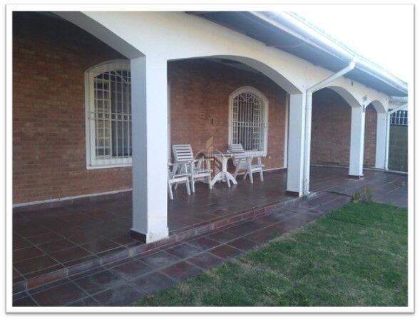 Casa térrea ao centro do terreno, totalizando 184m² de área construída em terreno de 300m²; considerando 12 de frente com 25 de fundos. Imóvel constituído de Sala de dois ambientes, Cozinha, três dormitórios, dois banheiros, área externa com churrasqueira de cimento , um cômodo com um banheiro ao fundo do imóvel e quintal amplo, com jardim e garagem.